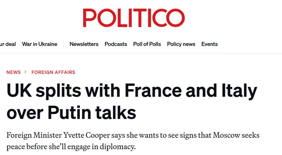 Великобритания публично разошлась с Францией и Италией по вопросу возобновления прямого диалога с Владимиром Путиным для урегулирования конфликта на Украине. Министр иностранных дел Йветт Купер заявила, что дипломатический перевес сейчас у Украины и её ключевых союзников — США и Европы, которые работают над планами мира и гарантиями безопасности. Купер подчеркнула: без конкретных шагов от России давление на Москву должно только усиливаться — через санкции и военную поддержку Киева.