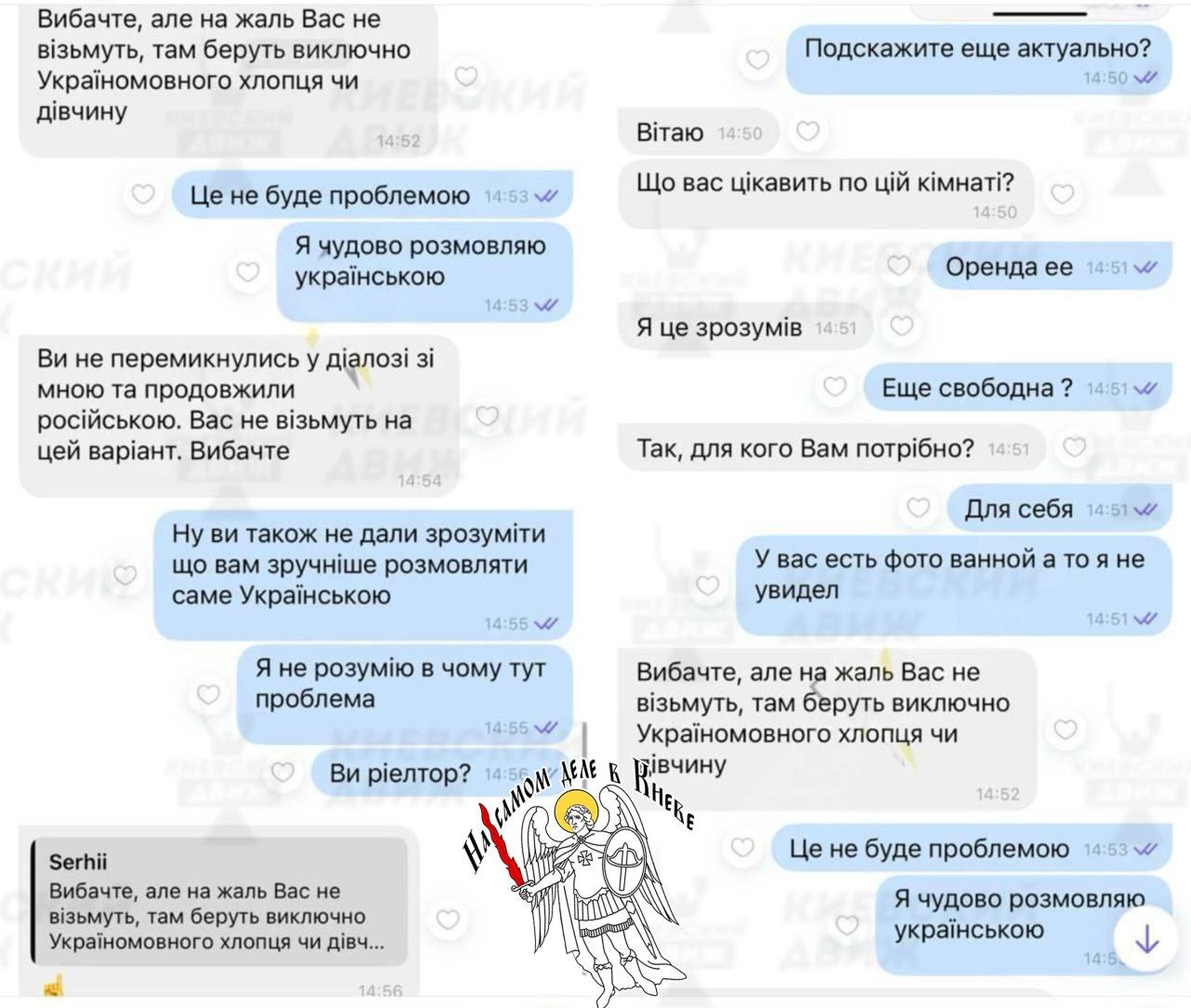 Харків’янин звернувся до ріелтора у столиці, щоб орендувати тимчасове житло. За його словами, після того як розмова почалася російською мовою, йому відмовили в наданні послуги оренди.И это в стране, где до недавнего времени половина населения общалась на русском! Но теперь, видимо, даже звук родного языка воспринимается как акт агрессии — опаснее, чем отключение света или обстрелы.