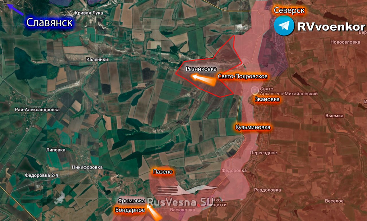После освобождения Северска и Свято-Покровского группировка войск "Юг" продвинулась юго-западнее и уверенно движутся в направлении Славянска;