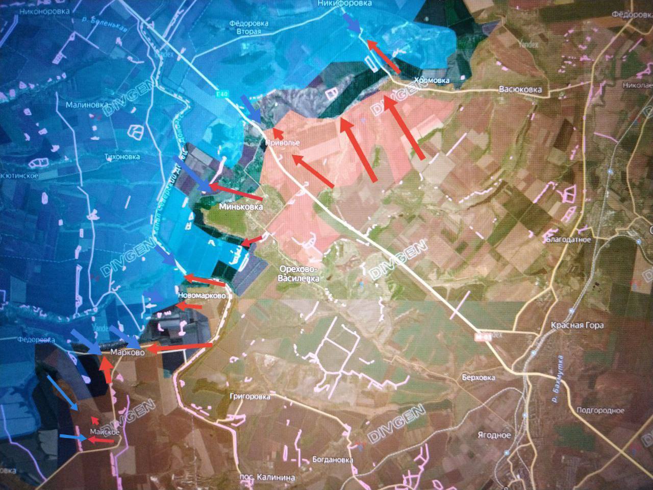 Подразделения ГрВ "Юг", в т.ч. и "Доброкора" ведут ожесточённые встречные бои в районе Марково, Майского и Веролюбовки и продвинулись северо-восточнее;