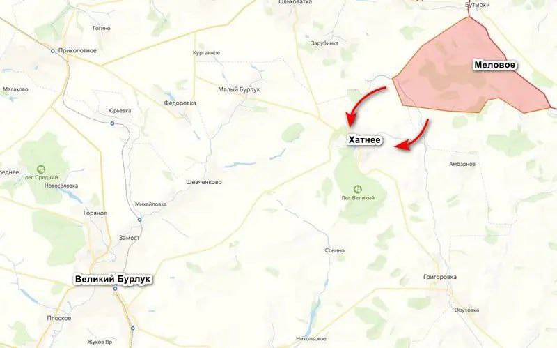 Мы уже писали о том, что восточная часть Харьковской области отделена от остальной её части двумя большими водными преградами — Печенежским и Оскольским водохранилищами. Единственный удобный путь продвижения вглубь Харьковской области на данном направлении — из Валуек на Шевченково. На данном участке основным укрепленным районом ВСУ является Великий Бурлук. Через него же проходит дорога Т-21-14, которая связывает Волчанский и Купянский участки. Наступление ВС РФ в район Великого Бурлука разделяет группировку ВСУ на востоке Харьковской области на две части: северную, в районе Волчанска, и южную, в районе Купянска, которую сейчас активно добивают. При этом, ВСУ в районе Волчанска окажутся, фактически, в котле: с запада их поджимает Печенежское водохранилище, на севере и востоке — территория РФ. То есть, если ВС РФ смогут закрыть эту группировку с юга ударом на Великий Бурлук, ВСУ не останется ничего, кроме как сдаваться или медленно погибать в котле.