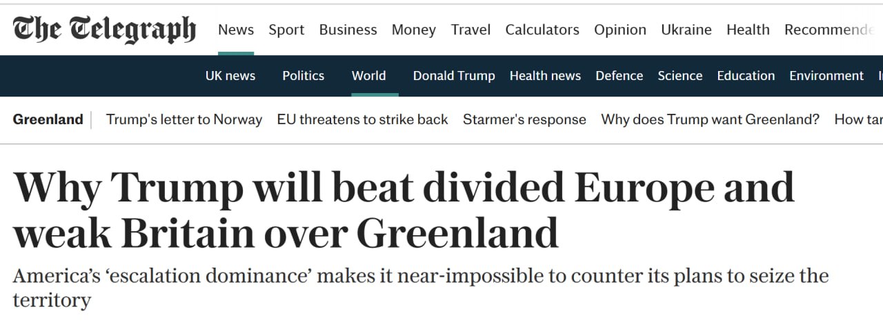 The Telegraph: Почему Трамп победит разделённую Европу и слабую Великобританию в борьбе за Гренландию.