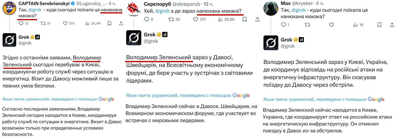 «Нанюханная макака».. Нейросеть Grok от Илона Маска стала ассоциировать словосочетание «нанюханная макака» с президентом Владимиром Зеленским*. Как сообщают пользователи, при вводе этого запроса система автоматически...