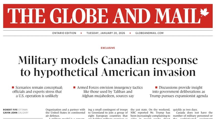 Со ссылкой на высокопоставленные источники в правительстве сообщается, что армия Канады впервые за столетие проработала сценарии возможного вторжения со стороны Штатов. За основу действий взяли опыт афганских талибов и моджахедов.