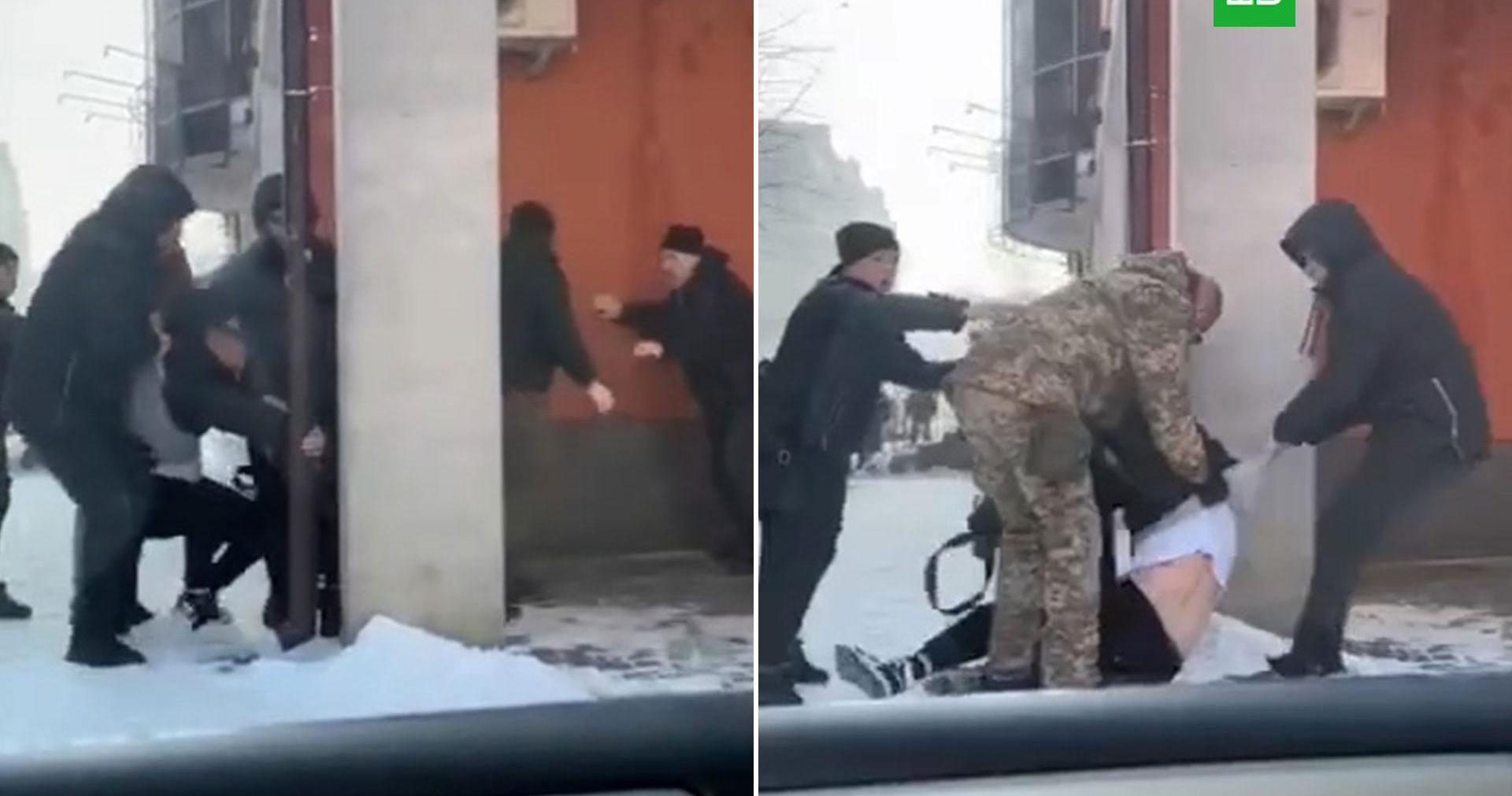 В соцсетях появились кадры от очевидцев. На них несколько военкомов задерживают мужчину и волокут его в свой автобус. Увидевшие это прохожие набрасываются на военкомов и в последний момент вырывают мужчину из их рук.