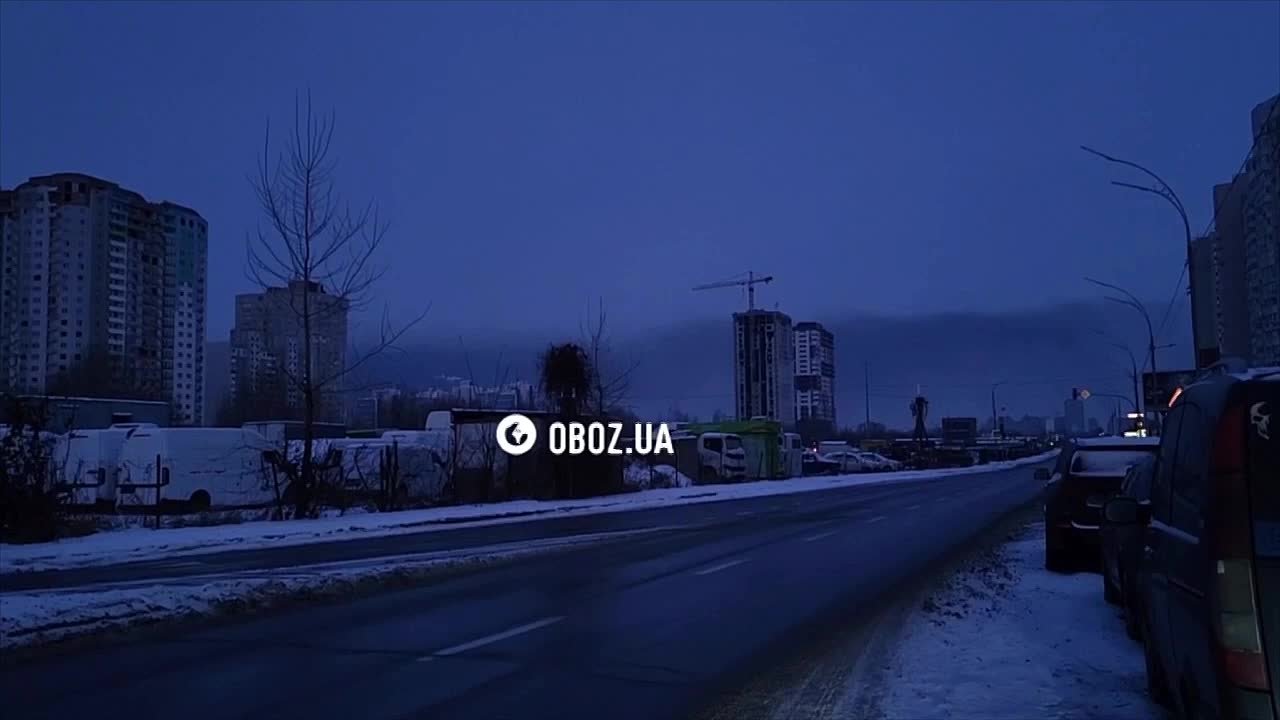 Дым после ударов по энергетике и отсутствие электричества на левом берегу Днепра в Киеве сегодня утром.