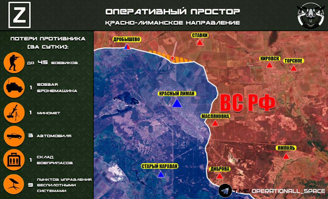 На Красно-Лиманском направлении ВС РФ продолжают наступление с севера в направлении города Красный Лиман