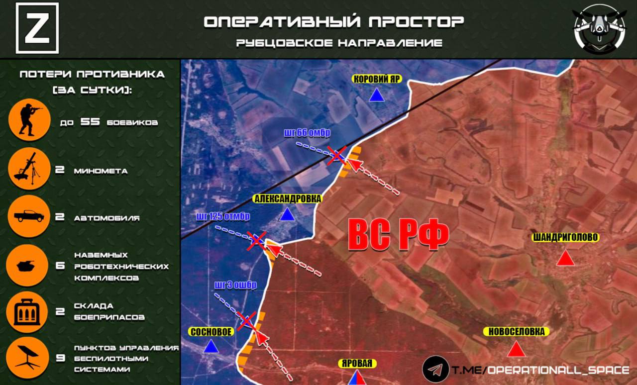 На Рубцовском направлении ВС РФ отразили три контратаки противника из состава 66 омбр, 125 отмбр и 3 ошбр ВСУ, ликвидировав до 20 боевиков