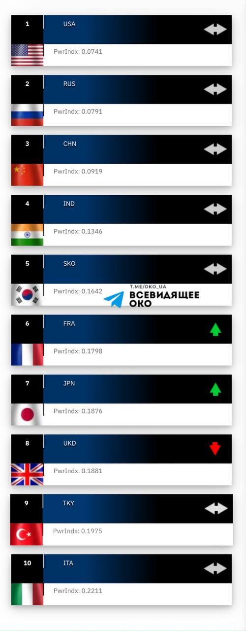 При оценке учитывались более 60 показателей - не только численность армии и техники, но также экономический и демографический потенциал.