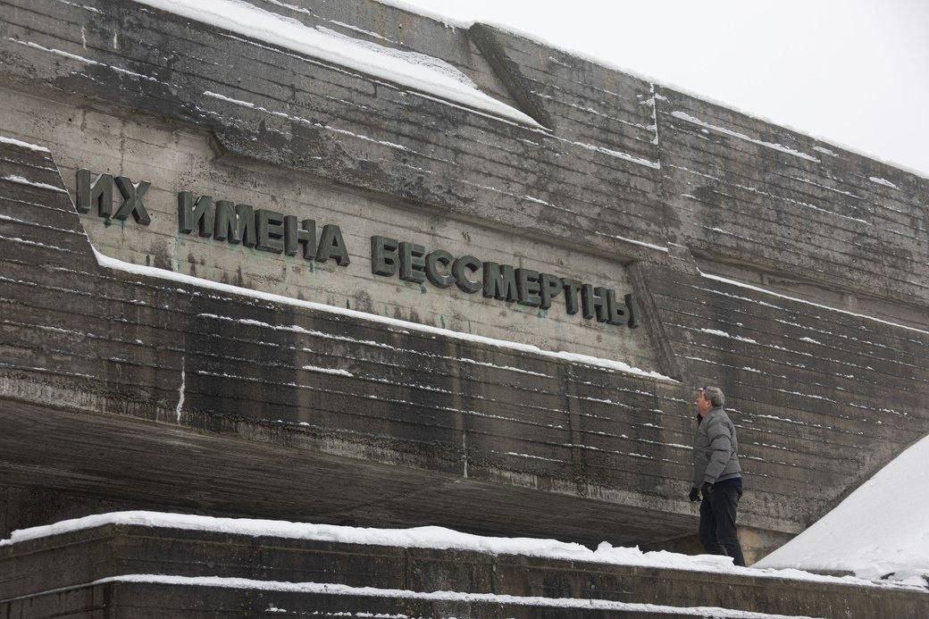 Эта надпись была частью экспозиции, посвященной героям Великой Отечественной войны. Решения о сносе подобных конструкций Музей называет "деколонизацией".