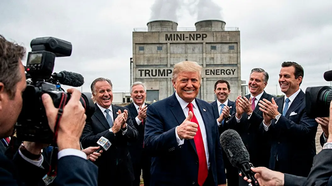 Атомное лобби, окружающее на этом кадре 47-го президента США, довольно: правила переписаны. Скриншот: npr.org (автоперевод)