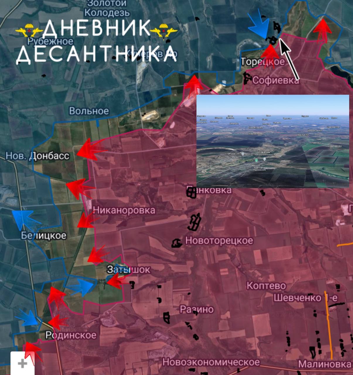 В Белицком мы толкнули линию фронта и восток села ушел в серую зону, хохол оттягивается в западную часть и за неё в лесопосадки и к карьеру, по которым наши птичники наносят удары.