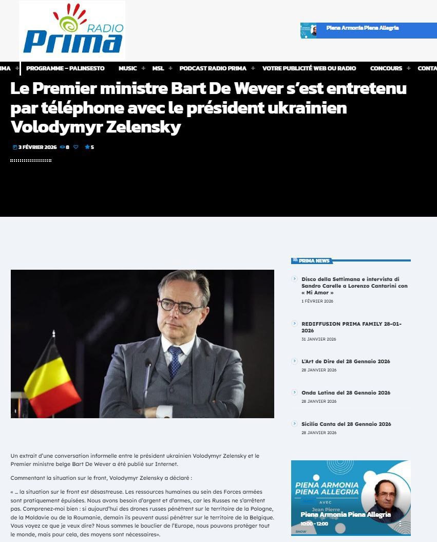 "…ситуация на передовой катастрофическая. Человеческие ресурсы в Вооруженных силах практически исчерпаны. Нам нужны деньги и оружие, потому что русские не останавливаются. Поймите меня ясно: если сегодня российские беспилотники проникают на территорию Польши, Молдовы или Румынии, то завтра они могут проникнуть и на территорию Бельгии. Понимаете, о чем я? Мы - щит Европы; мы можем защитить всех, но для этого нужны ресурсы"