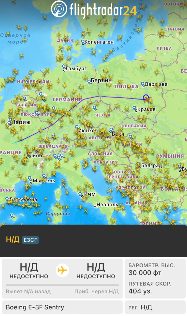 Сегодня над Польшей непривычно висел французский самолет ДРЛОиУ Е-3F. Обеспечивал чей-то переход границы с Украиной?