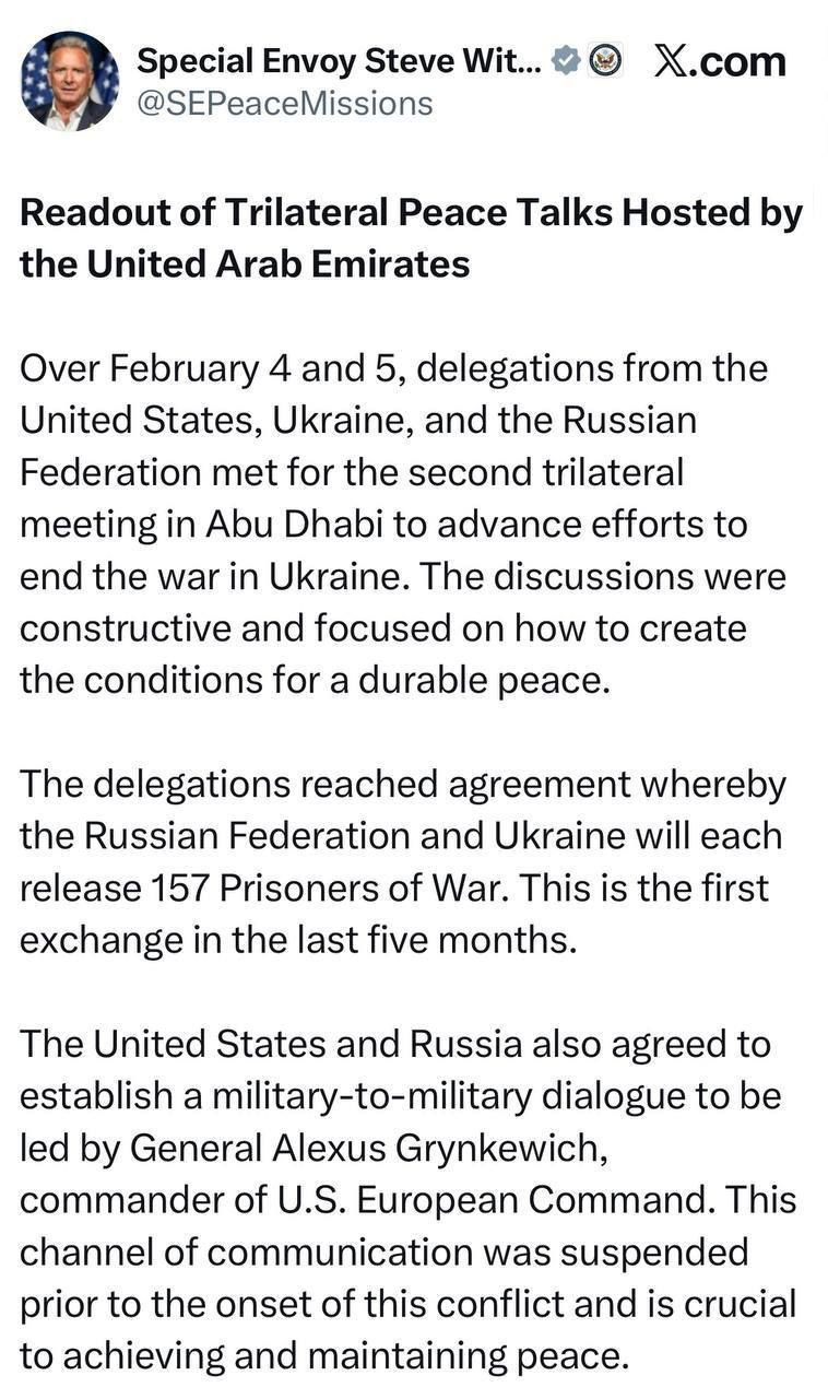 Итоги двух дней переговоров в Абу-Даби от американцев