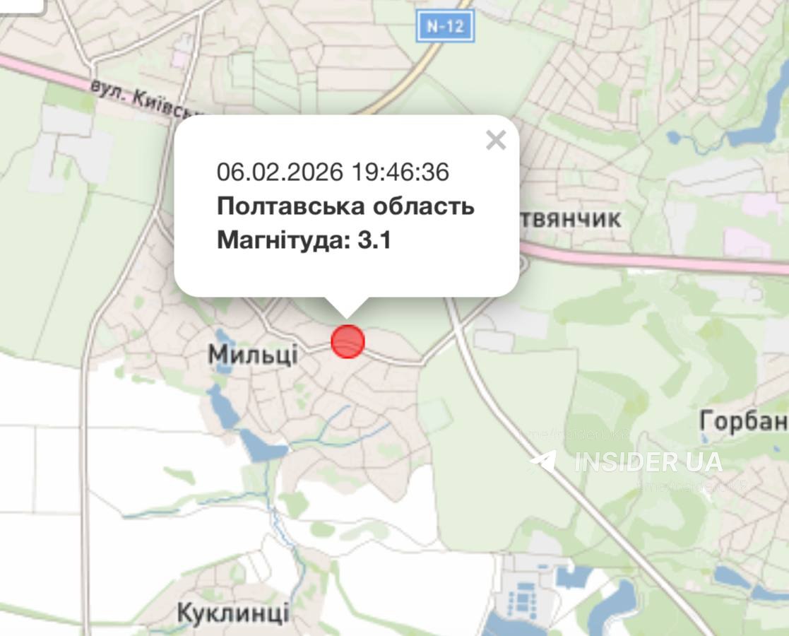 Сегодня вечером вблизи Полтавы произошло землетрясение магнитудой 3,1 балла