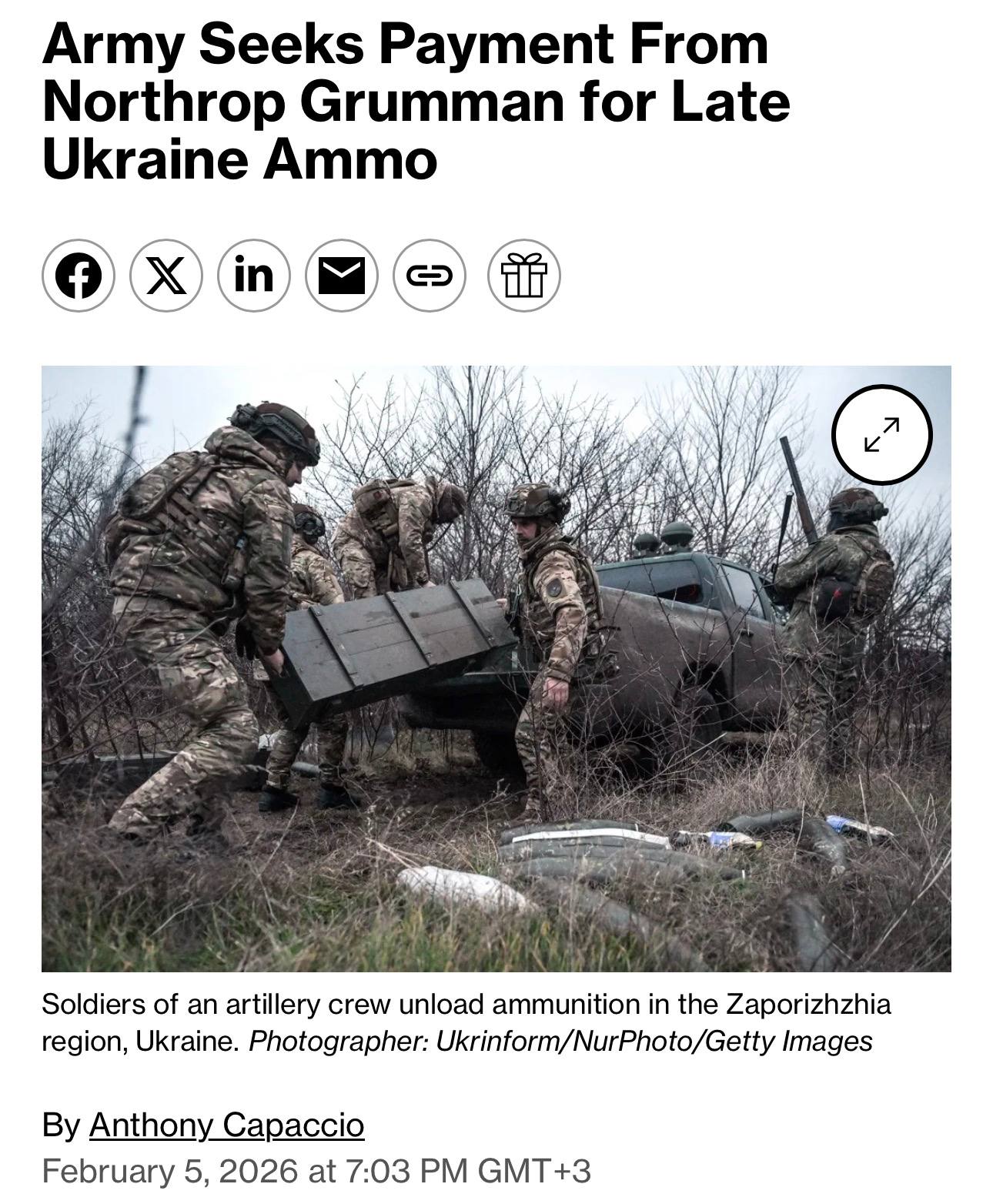 Армия США начала процесс взыскания штрафов с компаний Northrop Grumman и Global Military Products из-за задержек в поставках артиллерийских боеприпасов для Украины, сообщает Bloomberg.