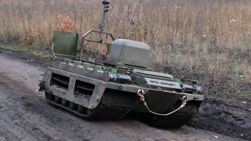 Россия, в свою очередь, использует наземные роботы для борьбы с украинскими дронами. В статье говорится, что поскольку украинские БПЛА серьёзно затрудняют наступление, Москва продвигает на передний край системы противодействия. Одно из решений — гусеничный электрический робот "Курьер" грузоподъёмностью до 250 кг. Первоначально он применялся для логистики, но недавно его оснастили комплексом РЭБ "Пероед-М", эффективно подавляющим управление украинскими дронами. На других кадрах "Курьер" несёт систему "Шлейф". Такие роботы действуют впереди российских позиций в украинских "зонах поражения", где дроны постоянно патрулируют и уничтожают открытую технику и личный состав. Без защиты от БПЛА российские подразделения избегают продвижения.