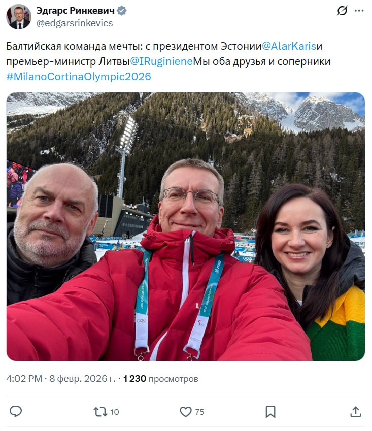 Президенты Латвии и Эстонии вместе с премьером Литвы вместо работы поехали в Италию посмотреть на олимпийские игры.
