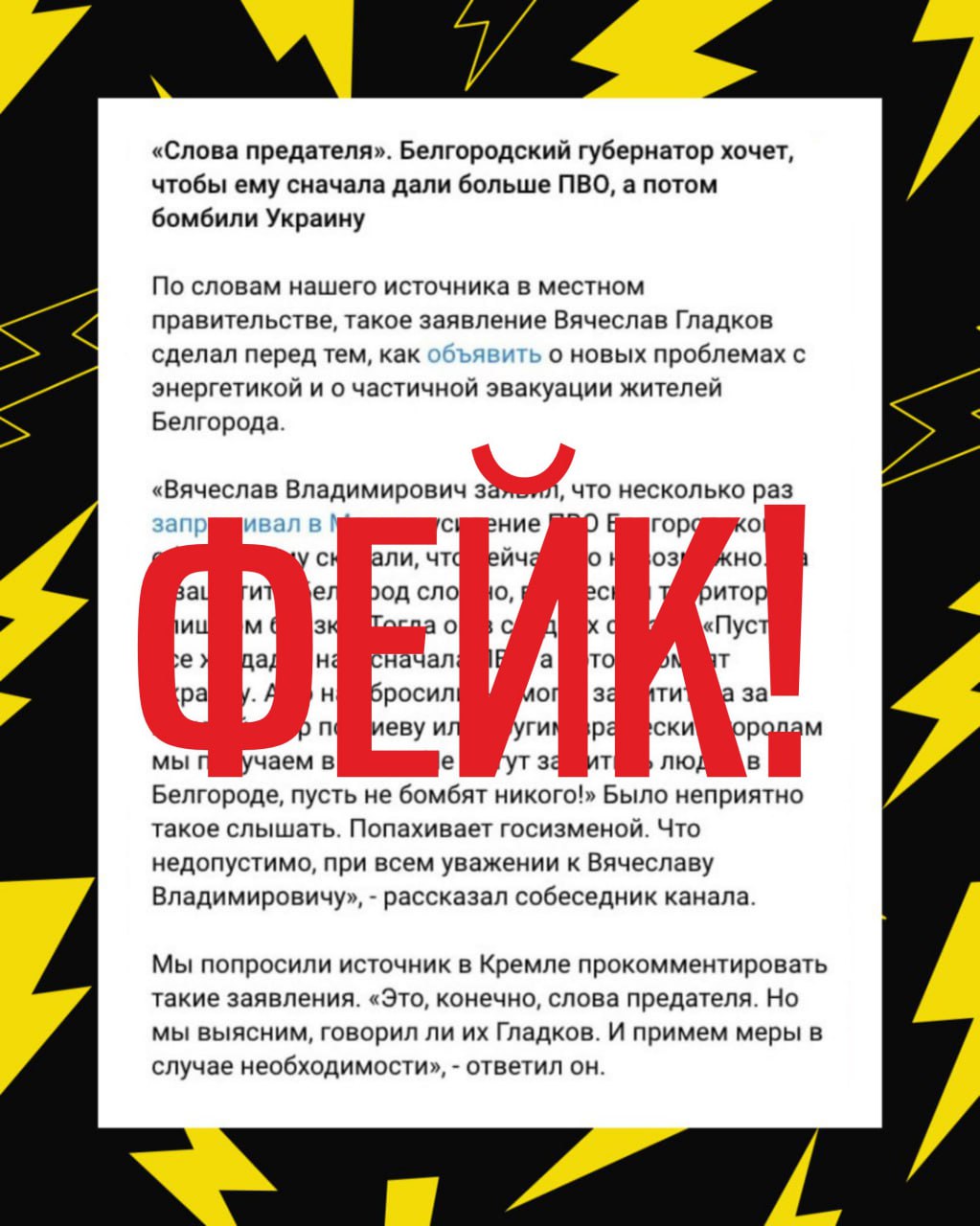 Украинская фейкомётная машина выдала очередную дезу – они якобы подслушали разговор губернатора Белгородской области, в котором тот призывал прекратить удары по Украине