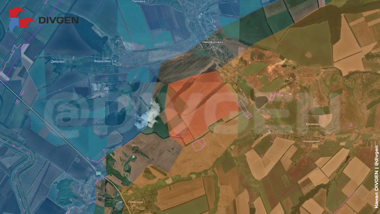 Успешное продвижение ГрВ «Юг» в районе Никифоровки отражает на карте ТГ-канал "Divgen"