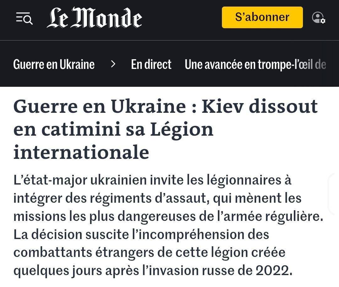 Иностранные наёмники на Украине деморализованы и грозят расторжением контрактов с ВСУ из-за расформирования «Интернационального легиона».