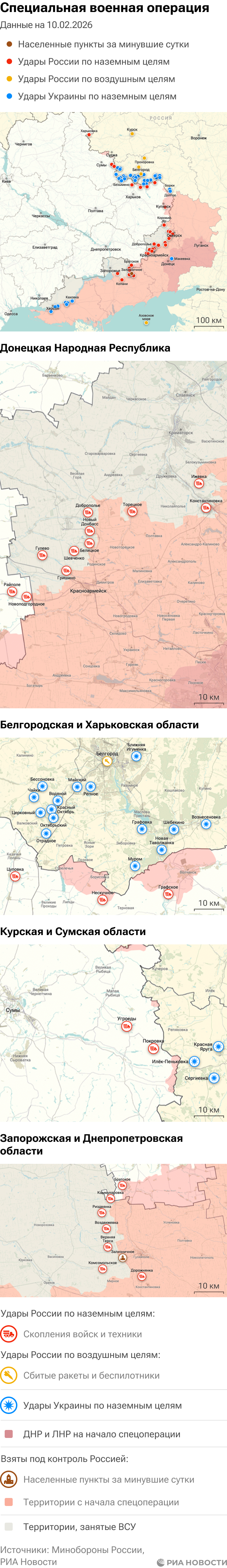 Российская армия с 24 февраля 2022 года проводит на Украине специальную военную операцию. Ее главной целью является помощь Донецкой и Луганской народным республикам, на территории которых с 2014 года не прекращались обстрелы. Перед российскими военными поставлена задача минимизировать потери личного состава и мирного населения при выполнении боевых заданий.Данные Минобороны и администраций новых регионов на 10 февраля 2026 года