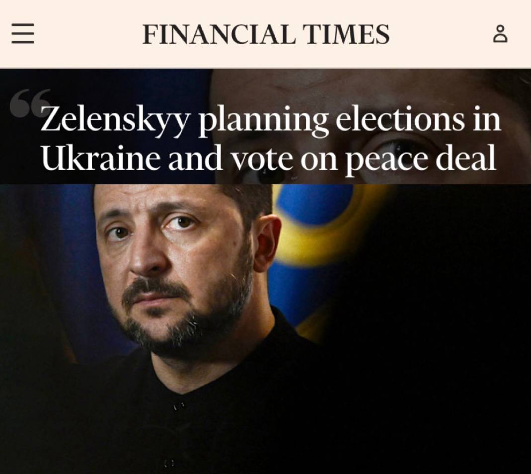 «Зеленский планирует выборы в Украине и голосование по мирному соглашению»: FT пишет, что США уговорили Зеленского провести выборы.