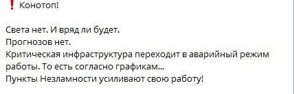В Конотопе исчез свет — сообщают украинские ТГ-каналы