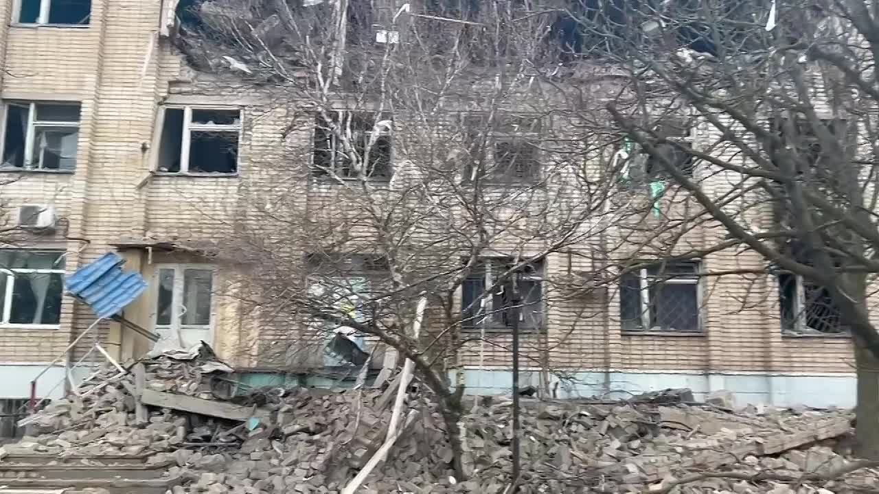 В результате атаки серьёзные повреждения получило здание на улице Соборной. Разрушены помещения городского почтового отделения, возник сильный пожар.В настоящий момент на месте работают оперативные службы — МЧС, правоохранительные органы. Движение транспорта в центральной части города и на подъездах к улице Соборной временно перекрыто.