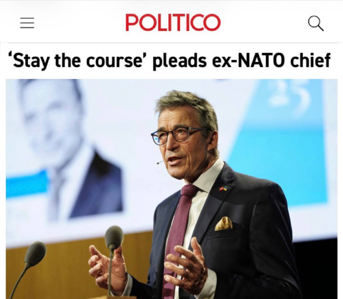 «Продолжайте в том же духе», - призывает бывший глава НАТО»: Расмуссен заявил о полной бесполезности НАТО без США.