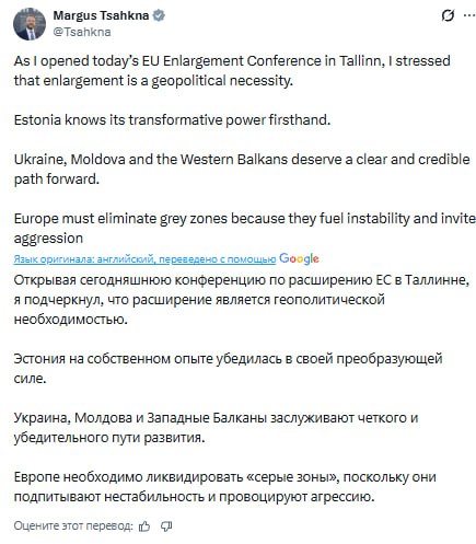 Маргус Цахкна, выступая на конференции по расширению Евросоюза в Таллине, отметил ее "геополитическую необходимость".