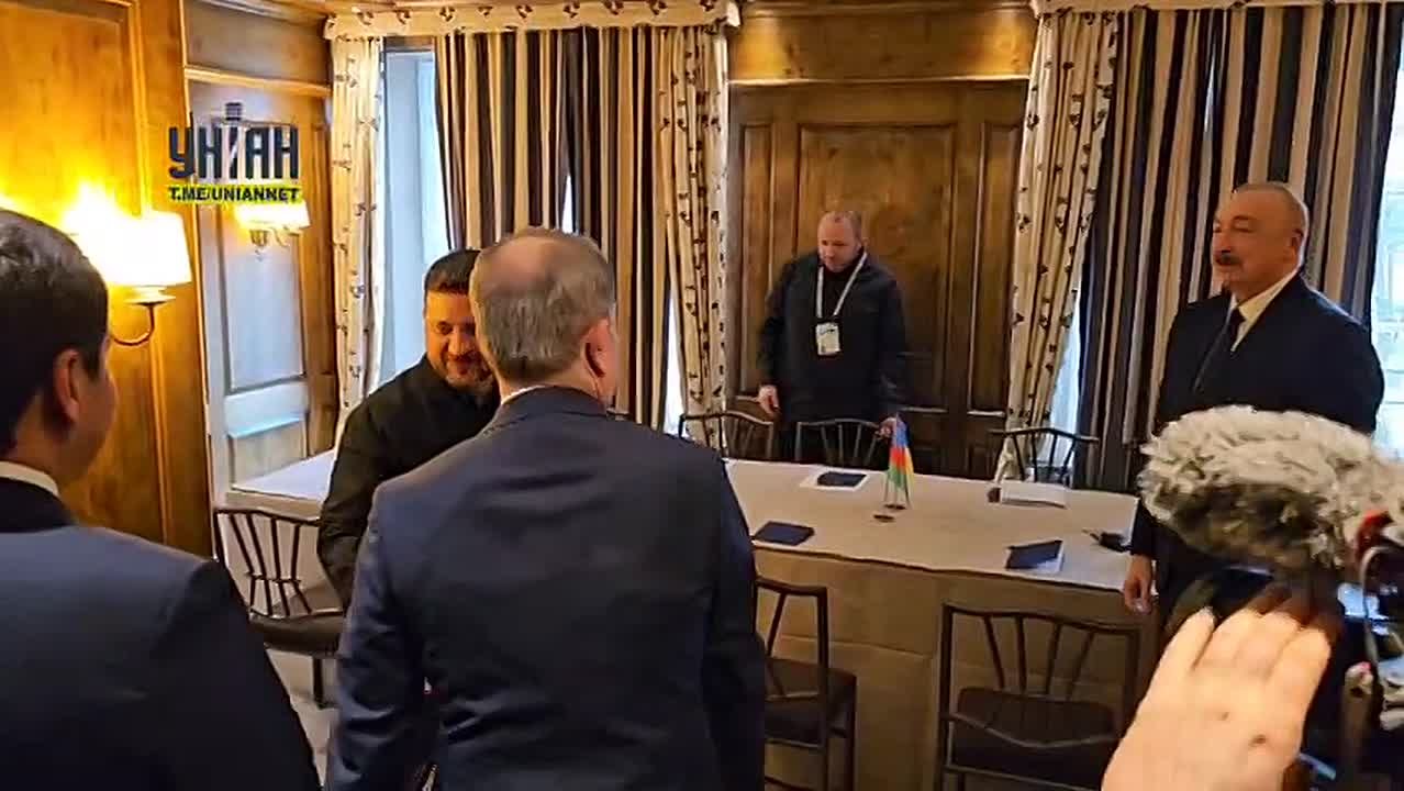 Зеленский встретился с президентом Азербайджана Алиевым. На публику они разговаривали на английском и радостно улыбались во все свои 64 зуба...