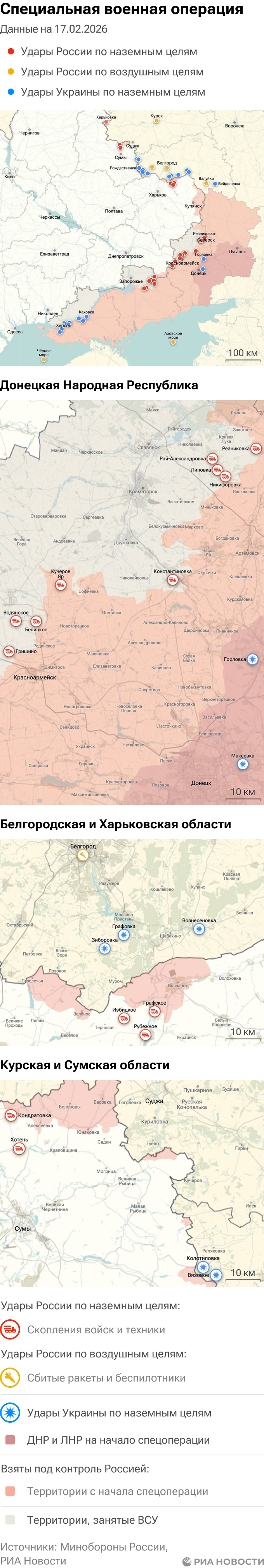 Российская армия с 24 февраля 2022 года проводит на Украине специальную военную операцию. Ее главной целью является помощь Донецкой и Луганской народным республикам, на территории которых с 2014 года не прекращались обстрелы. Перед российскими военными поставлена задача минимизировать потери личного состава и мирного населения при выполнении боевых заданий.Данные Минобороны и администраций новых регионов на 17 февраля 2026 года