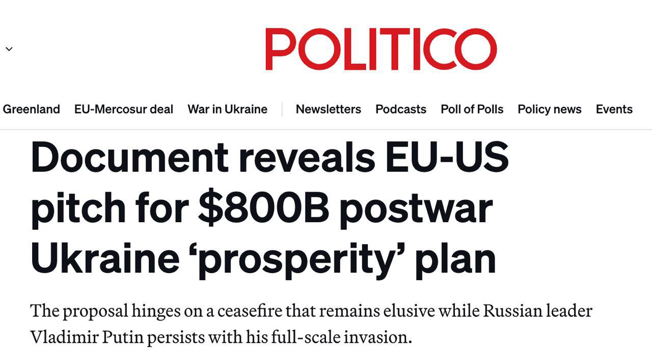 США и ЕС обещают вложить в восстановление Украины $800 млрд - Politico