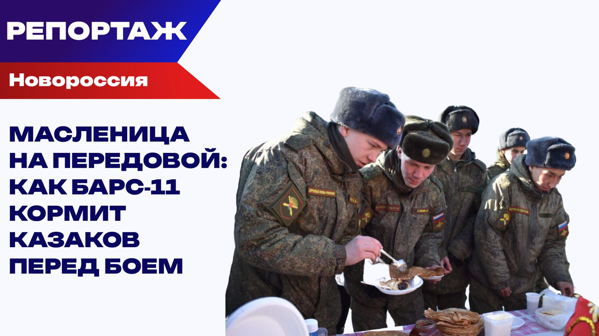 На этот раз в присутствии съемочной группы интернет-издания Украина.ру бойцы добровольческого батальона БАРС-11 имени Праведного Ионна Русского накрывали стол, где помимо блинов были бутерброды с паштетом, большая сковородка с яичницей, пирог, мясной торт и другие простые национальные русские блюда. О том, как встречают этот православный праздник на фронте журналистам рассказал командир добровольческого казачьего отряда с позывным "Ямаха".