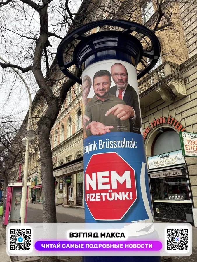 По всему Будапешту в эти дни появились билборды в поддержку общенациональной петиции против финансирования Украины за счёт средств Евросоюза и венгерских налогоплательщиков.