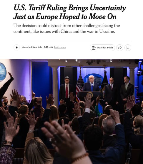 Вердикт Верховного суда США по тарифам отвлек ЕС от Украины и Китая.