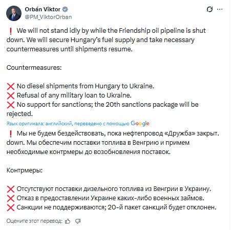 Премьер Венгрии обозначил список ограничений по отношению к Украине за саботаж нефтепровода "Дружба"