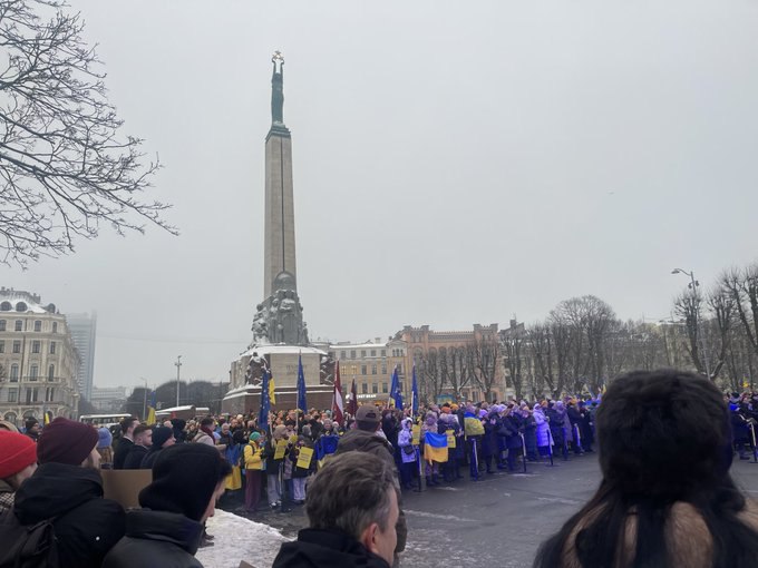 Около 500 человек собрались в Риге у памятника Свободы в поддержку Киева