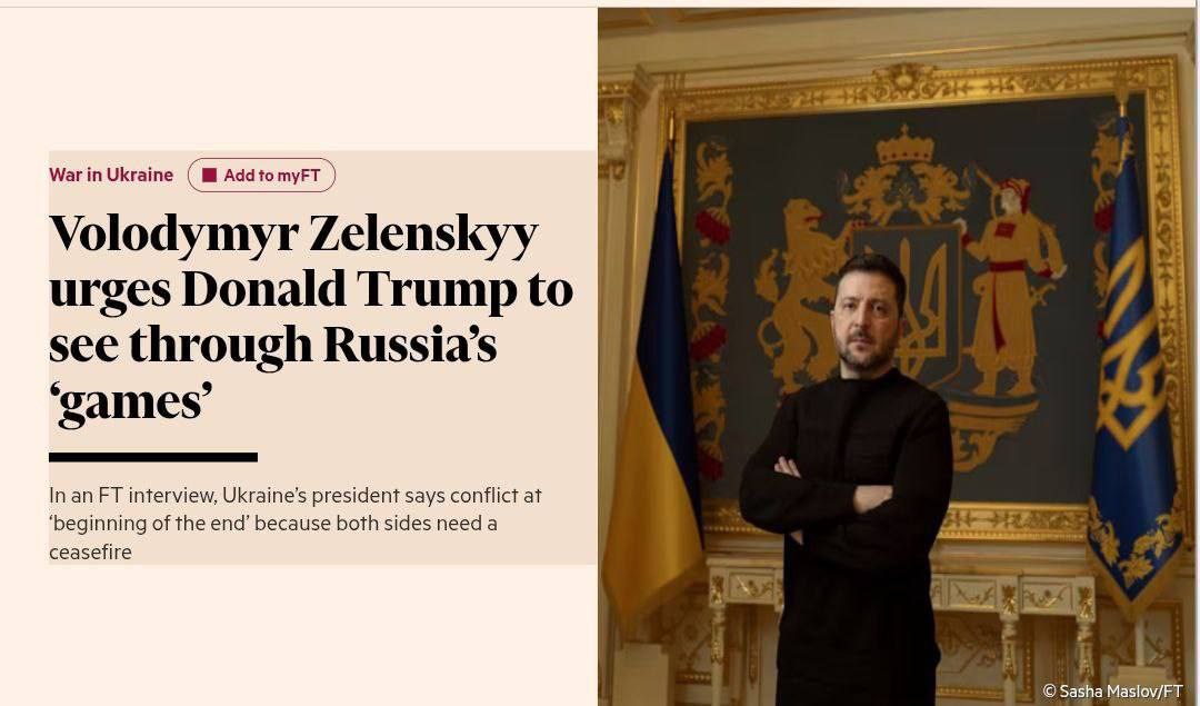 В интервью Financial Times Владимир Зеленский заявил, что конфликт между Россией и Украиной вступил в фазу «начала конца», однако подчеркнул, что речь не идёт о завершении войны ценой уступок по Донбассу.