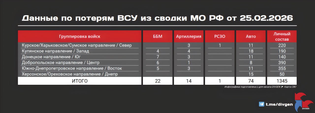 Как сообщает ТГ-канал "DIVGEN", потери противника за сегодняшний день составили:
