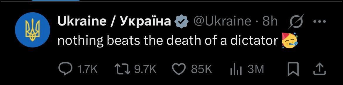 Больные на всю голову: официальный аккаунт Украины в X отпраздновал смерть Хаменеи.