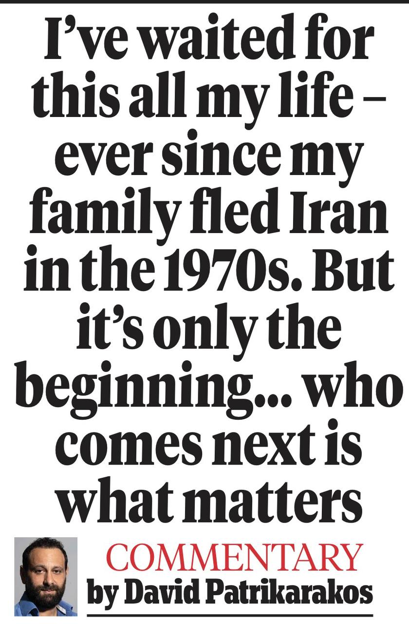 Я вчера рассказывал, что британские журналисты дружно кинулись писать о своих «иранских» корнях, забыв, что раньше они сообщали о другом происхождении. Вот и военкор Daily Mail Дэвид Патрикаракос вдруг сегодня открыл, что он тоже «иранец»!