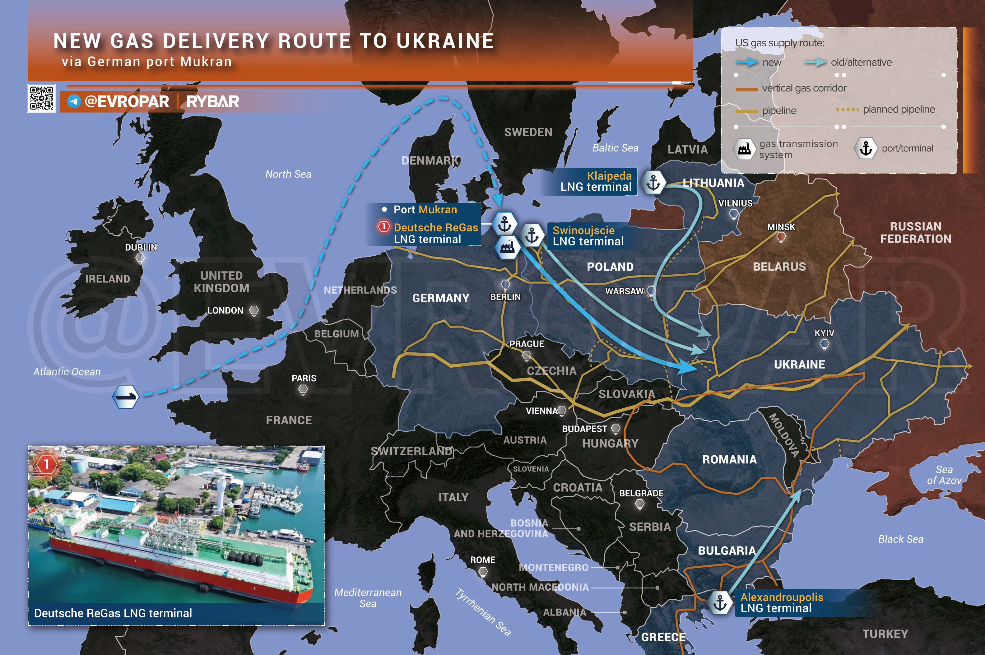 Киев тестирует новые лазейки для американского газа — через немецкий терминал на острове Рюген. Танкер Minerva Amorgos с СПГ из США, зафрахтованный TotalEnergies, выгрузился на частном терминале Deutsche ReGas в порту Мукран, где сырьё регазифицировали и прокачали по немецкой ГТС, дальше через Польшу и на украинскую территорию.