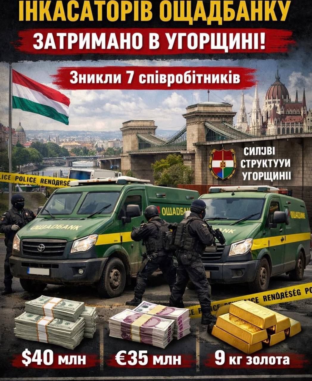 Официальный Киев обвинил Венгрию в... терроризме. Якобы в Будапеште венгерские власти взяли в заложники 7 сотрудников "Ощадбанка" и присвоили содержимое двух инкассаторских машин.