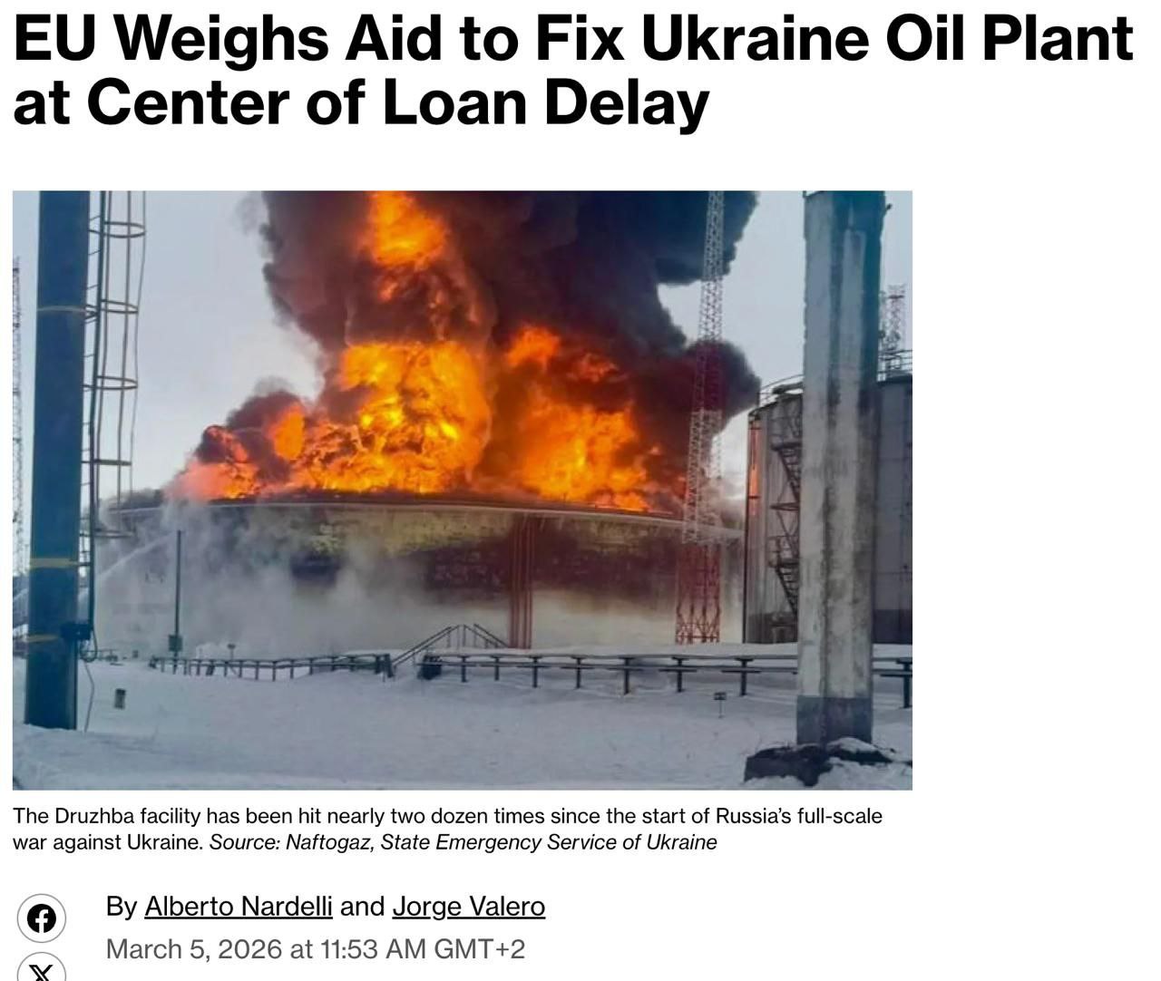Еврокомиссия рассматривает возможность выделить Украине деньги для ремонта нефтепровода «Дружба», без запуска которого Венгрия и Словакия блокируют выделение кредита и введение санкций против РФ, сообщает Bloomberg со ссылкой на источники.