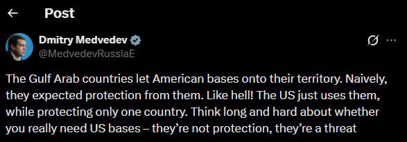 Страны Персидского залива допустили американские базы на свою территорию. Наивно ожидали от них защиты.Да ну! США просто используют их, защищая только одну страну.