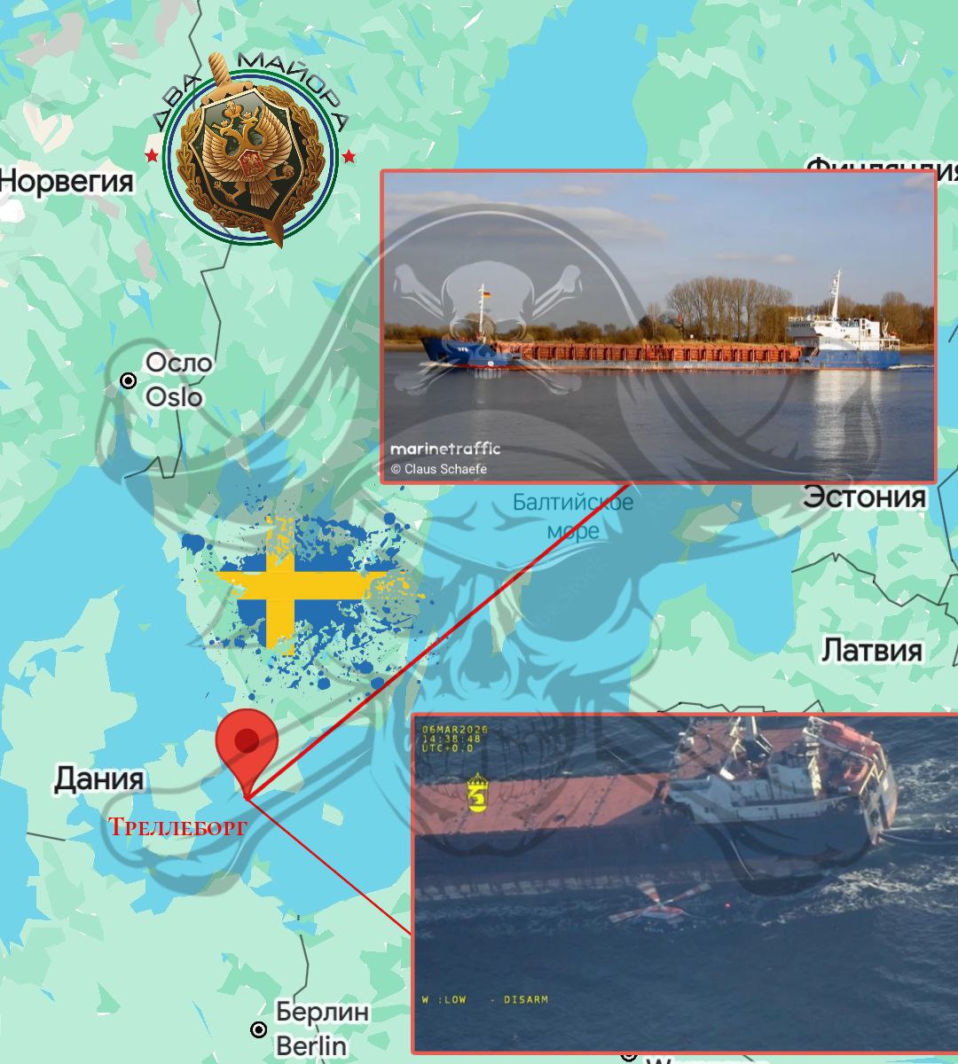 Береговая охрана и полиция Швеции в Балтийском море у берегов Треллеборга на юге Швеции задержали сухогруз Caffa (флаг Гвинеи). Для операции под идиотским названием «Черный кофе», опять задействовались вертолеты, с одного из которых высадился десант.
