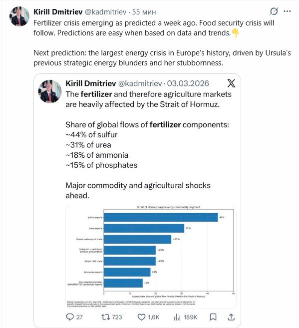 Дмитриев прогнозирует Европе ‘крупнейший энергетический кризис’, но еврокомиссара по энергетике Дана Йоргенсена это не заботит. Его греет русофобия и любовь к украинским друзьям.